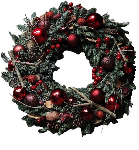 - Burgundy Assorted Baubles: carefully selected for their deep, rich color and varied sizes. These ornaments add a bold and sophisticated touch to the wreath, bringing festive sparkle and shine to any room.