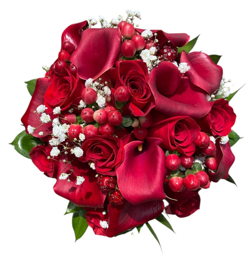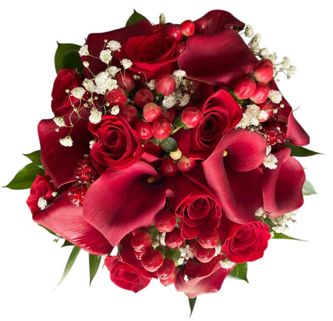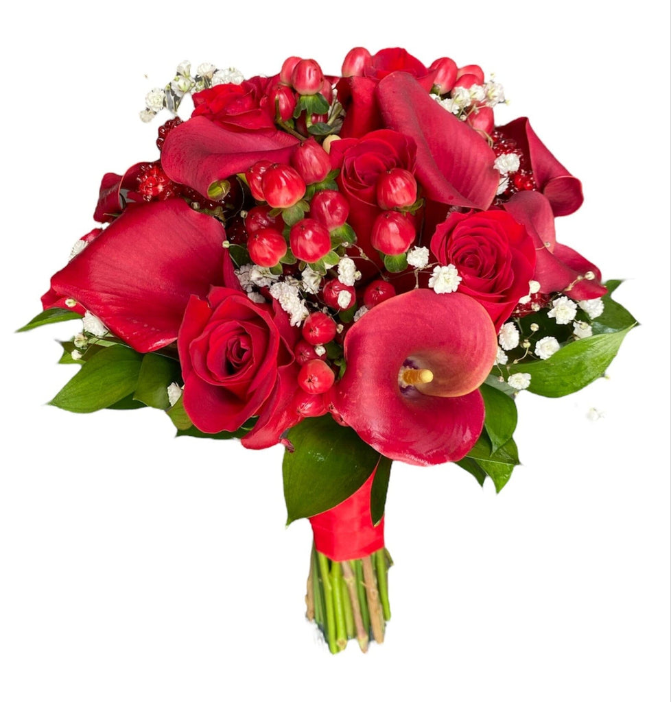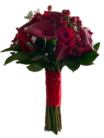 Let its radiant blooms accompany you as you embark on this magical journey together, creating cherished memories that will last a lifetime. Celebrate enduring love with our Calla Lily and Red Roses Bridal Bouquet featuring calla lilies and red roses. Symbolizing passion and elegance, this bouquet adds a touch of classic beauty to your wedding day ensemble.