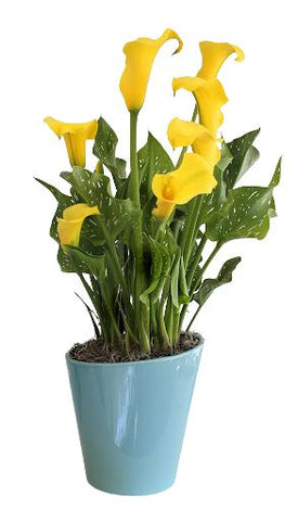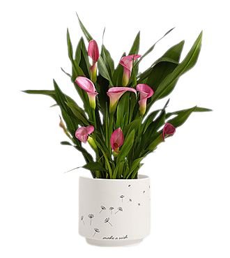 Whether as a gift to someone special or to enhance your own home decor, the Calla Lily in a ceramic pot is a timeless beauty that will bring joy and elegance to any setting. We offer this delightful plant in a range of sizes, each one thoughtfully designed to fit your preferences. With each size increase, the pot also grows accordingly, providing the ideal space for your flourishing plant.