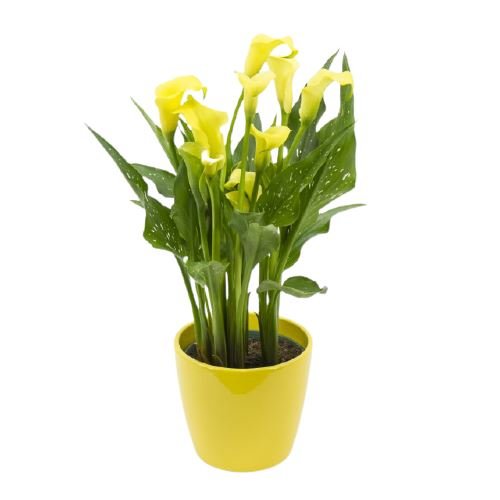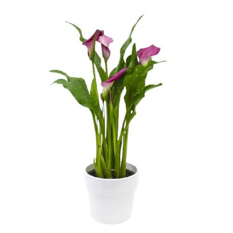 The Calla Lily Ceramic Pot is a stunning plant that requires minimal care, making it perfect for both indoor and outdoor settings. With its beautiful palette of colors, the Calla Lily has become a popular choice for house plants, bringing elegance and charm to any space.Presented in a ceramic pot, this modern plant is long-lasting, ensuring that its beauty will grace your home for a significant period. Its graceful blooms and vibrant hues add a touch of sophistication to your living spaces.