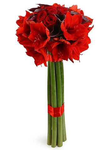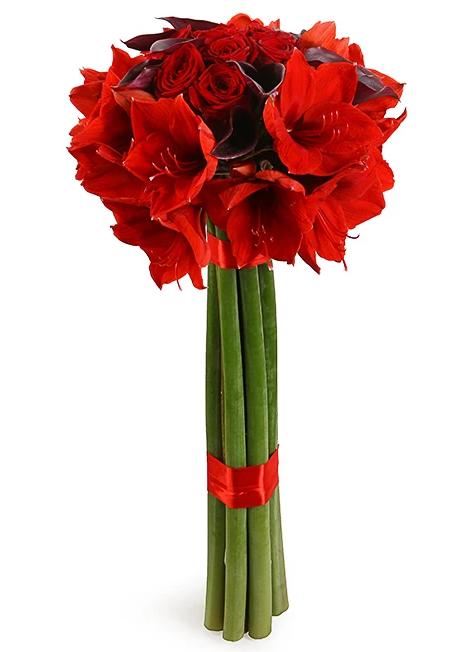- Red Amaryllis: add a touch of grandeur with red amaryllis, known for their majestic blooms and rich color. Symbolizing determination and beauty, amaryllis add a sense of opulence and vitality to the bouquet, creating a striking focal point.