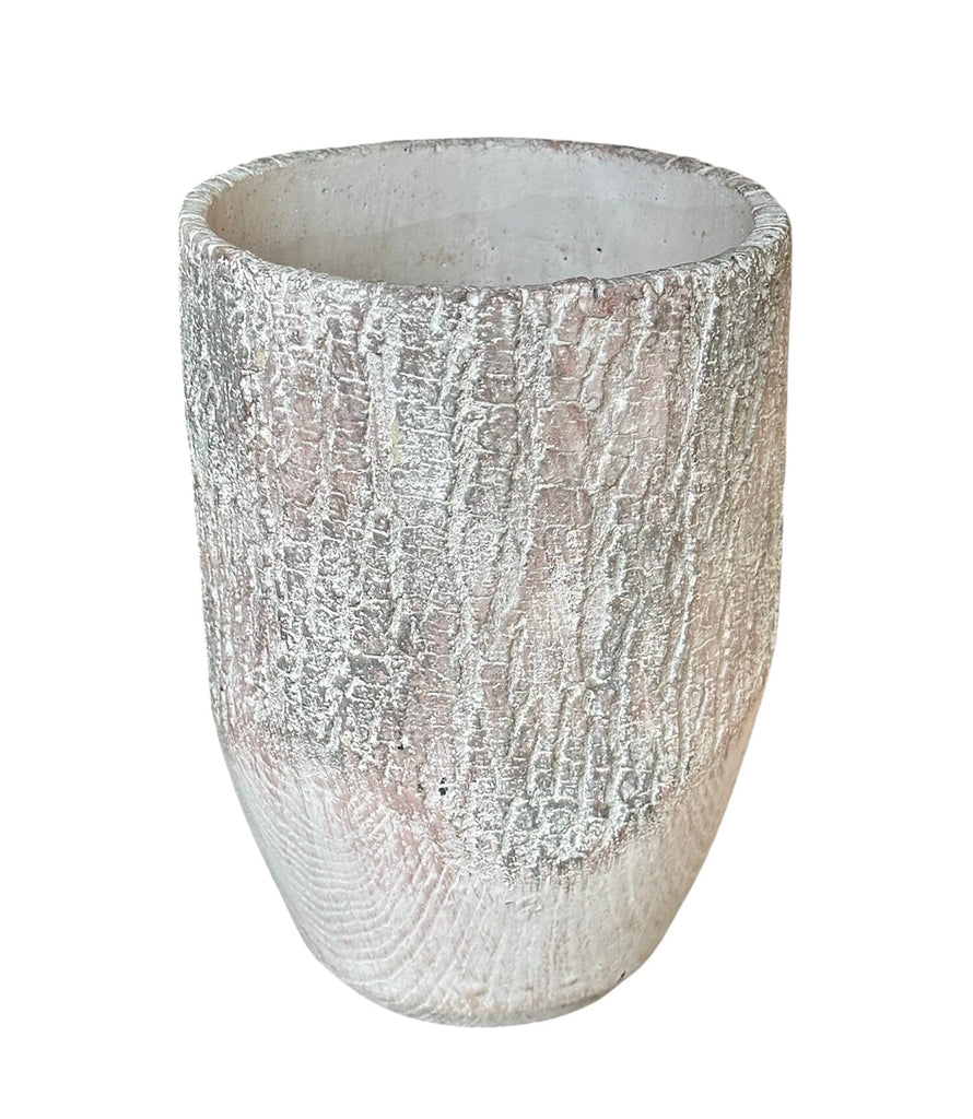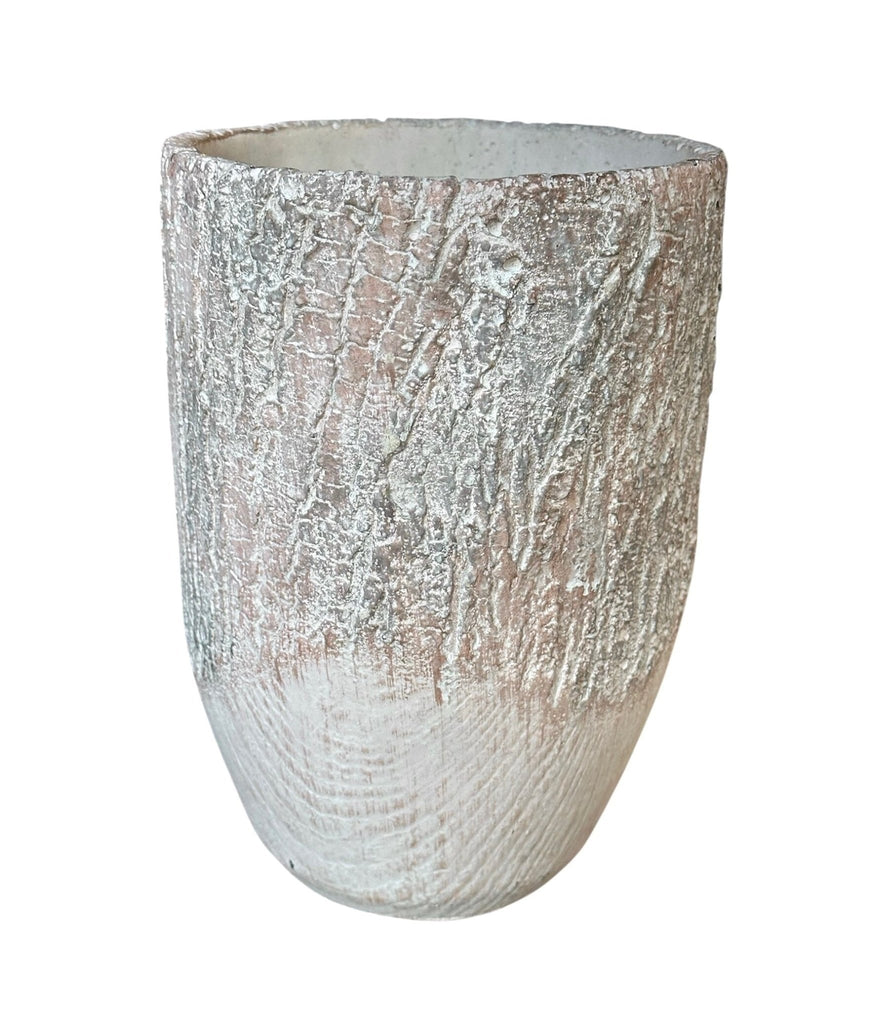 Inspired by the raw textures of natural wood, the CARVED YEW pot evokes the rugged beauty of tree bark with a refined, artistic finish. Handcrafted with a distinctive carved surface, this piece combines rustic charm with modern elegance. The soft hues of weathered white and muted earthy tones create a versatile aesthetic that complements both minimalist and nature-inspired interiors.