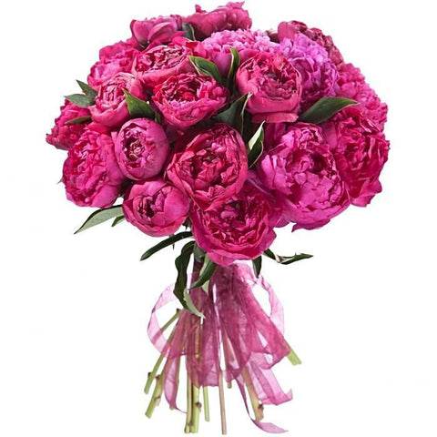 A Cerise Peonies Bouquet showcases the stunning beauty of these luxurious flowers in a rich and vibrant hue. Cerise, a deep pinkish-red color, adds a touch of romance and elegance to any floral arrangement, making it an exquisite choice for special occasions or to convey deep emotions. Whether given as a romantic gesture, a symbol of admiration, or to simply brighten someone's day, a Cerise Peonies Bouquet makes a memorable and meaningful gift. Its lush blooms and vibrant color are sure to leave a lasting impression and bring joy to the recipient's heart.