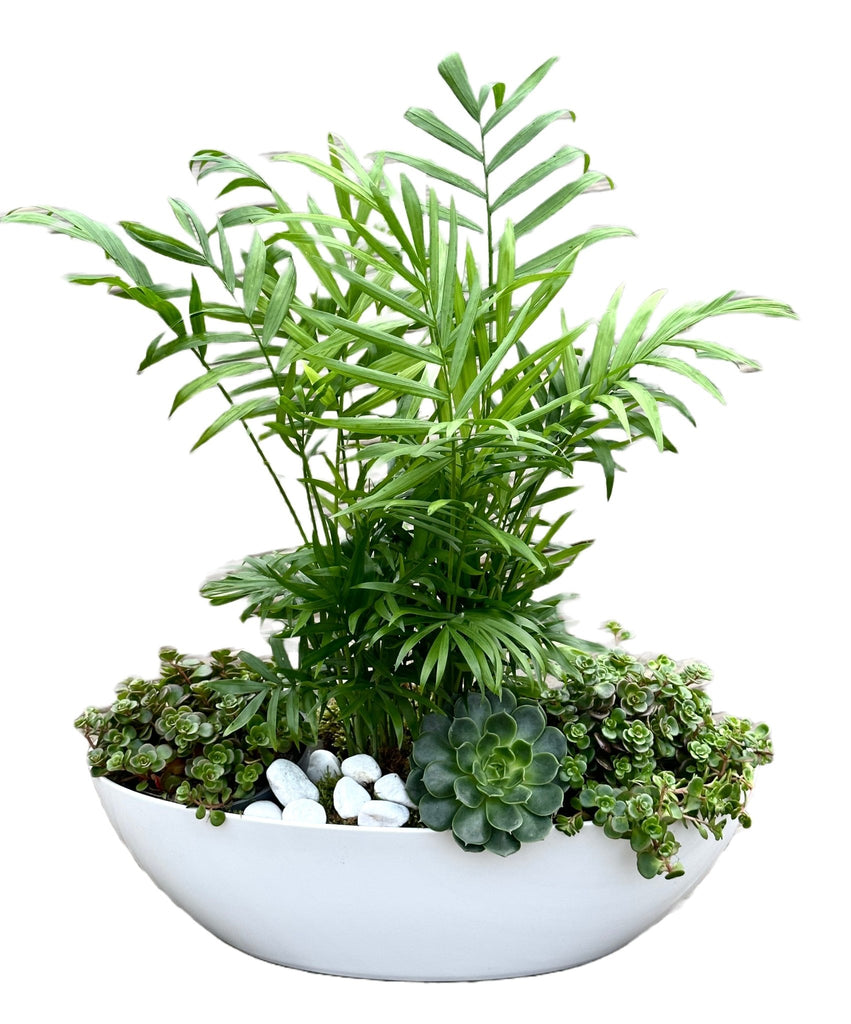 Chamaedorea and Succulent Plant Arrangement: A Stylish Greenery Display