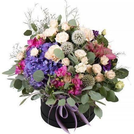 The Charm Box is an exquisite floral arrangement that combines a variety of vibrant blooms and foliage to create a visually stunning and elegant display.