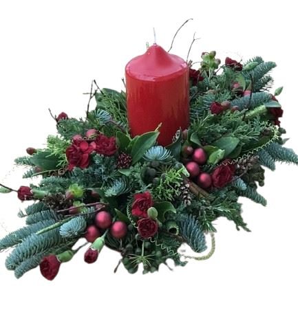 - Red Spray Carnations: add a lush and vibrant touch to the centerpiece. Known for their ruffled petals and abundant blooms, these flowers symbolize love and admiration, making them perfect for the holiday season. Their bright red color evokes feelings of warmth and cheer, enhancing the festive spirit of the arrangement.