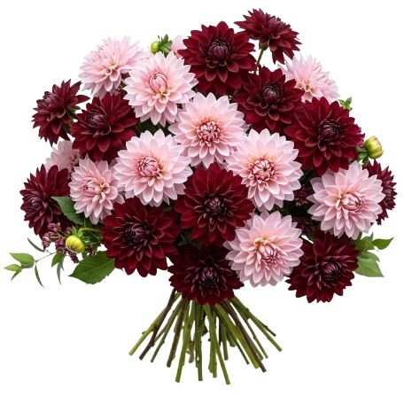 Celebrate elegance and vibrant color with our Charming Bouquet of Burgundy and Pink Dahlias — a stunning floral arrangement that perfectly balances deep, rich tones with soft, romantic hues. Adds a splash of vibrant color and natural beauty to any room. A beautiful choice for birthdays, congratulations, or as a thank-you gift.