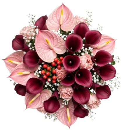 Discover the beauty and sophistication of our Charming Bouquet of Calla Lily with Anthurium and Spray Roses, thoughtfully designed to bring elegance and warmth to any celebration. This bouquet is a stunning blend of pink anthurium, symbolizing hospitality and grace, paired with the sleek and refined Calla Lily (available in a variety of colors to suit your preference). Complementing these striking blooms are delicate pink spray roses, a timeless emblem of admiration and joy, alongside the airy softness of white gypsophila (baby’s breath), adding a dreamy, cloud-like texture. To complete the arrangement, vibrant red hypericum berries infuse the bouquet with depth, contrast, and a touch of festive charm.