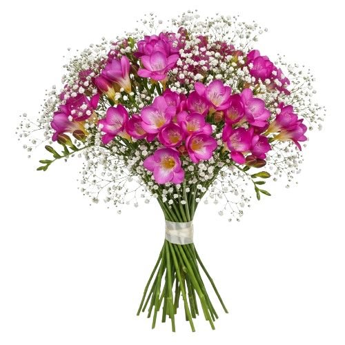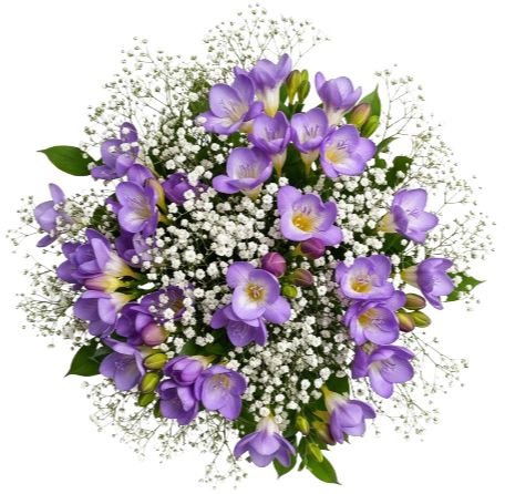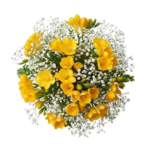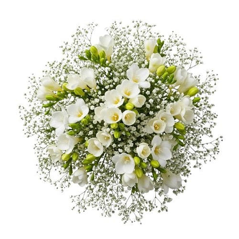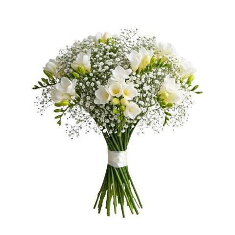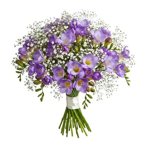 Charming Bouquet of Freesias and Gypsophila – Fresh, Fragrant & Elegant