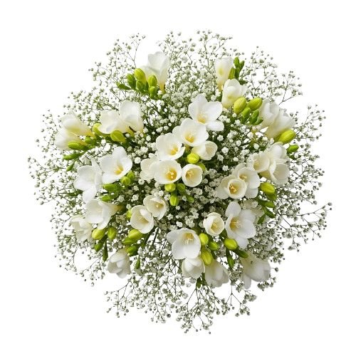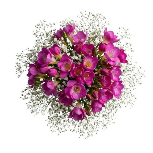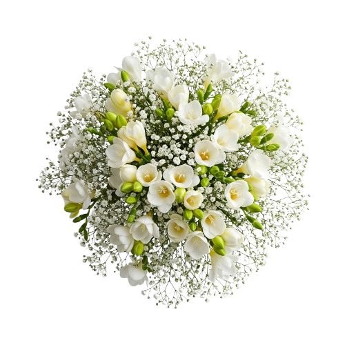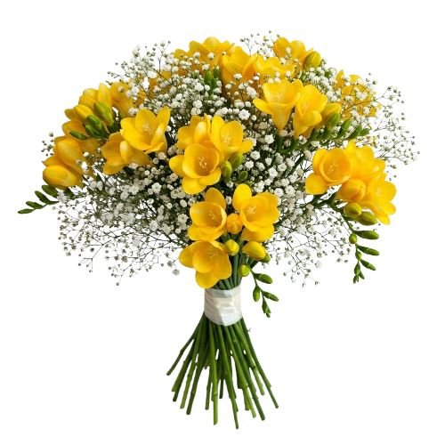 - White Gypsophila: often called “baby’s breath,” this airy and delicate filler flower adds a soft, romantic touch, enhancing the vibrant freesias with its cloud-like beauty.