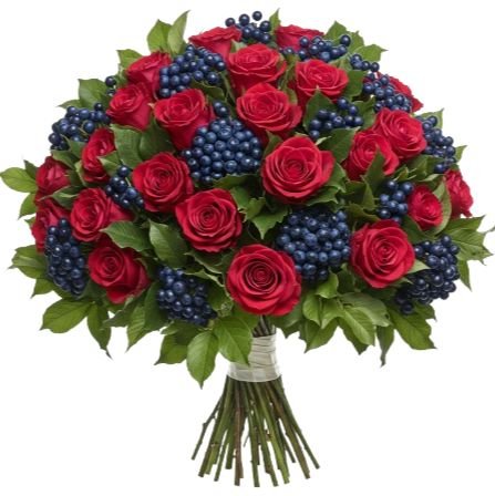 Romantic Bouquet of Red Roses & Blueberries – Stunning Gift for Any Occasion