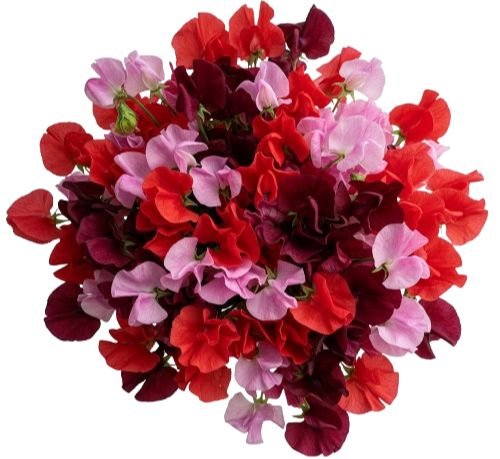- Red Sweet Pea: bold and passionate, red sweet peas symbolize deep love and admiration.