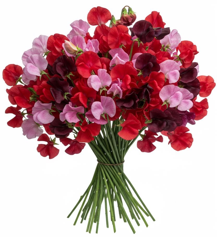Charming Shades of Red and Pink Sweet Peas Bouquet – A Romantic & Elegant Floral Gift