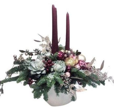 The accessories we used for this Christmas decoration are kept in beautiful shades of burgundy and silver. The simple form gives the composition lightness and elegance. High-quality flowers and harmony of the composition will beautifully decorate both dark and light furniture.