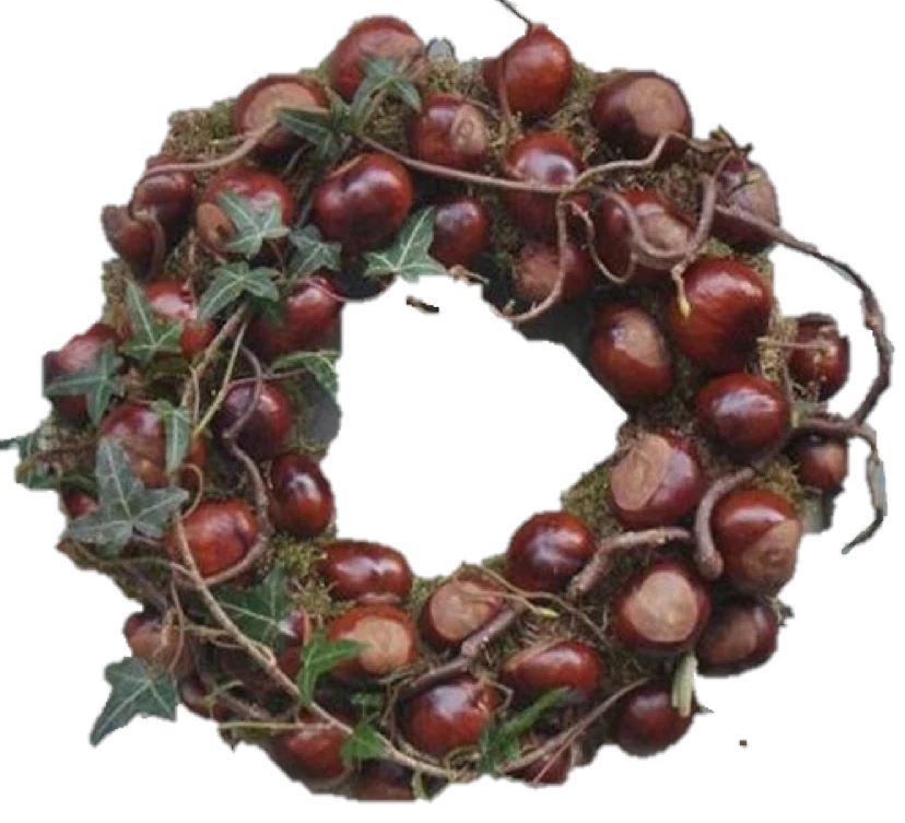 - Hedera (Ivy): adds an elegant, flowing element to the wreath. Its trailing vines wrap beautifully around the chestnuts, giving the wreath a lush and full appearance.