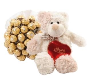 Surprise your loved ones with our Chocolate Bouquet with Cute Teddy Bear and Chocolate Heart, a delightful gift that combines the indulgence of premium chocolates with the charm of a cuddly teddy bear. This irresistible bouquet features an assortment of carefully selected chocolates, elegantly arranged for a stunning presentation.