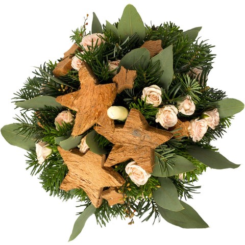 Bring the magic of Christmas to your home with our Christmas Box with Stars — a handcrafted spruce arrangement featuring festive ornaments and a glowing Christmas candle. Perfect as an elegant Christmas table decoration or a thoughtful holiday gift, this charming floral box adds warmth and beauty to every celebration. Created by experienced florists, each box captures the true spirit of Christmas with premium materials and timeless design. Ideal for enhancing your holiday décor or surprising loved ones with a ready-made christmas centerpiece that shines with festive joy.