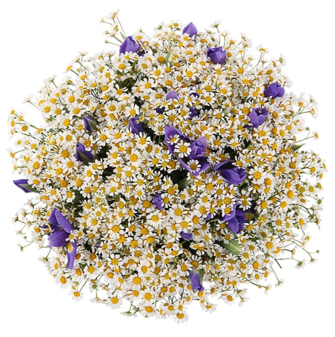 Brighten any room with our Classic Bouquet of Daisy Tanacetum with Irises, a stunning combination of cheerful daisies and elegant irises. This bouquet brings together the simplicity and freshness of daisy tanacetum with the bold, graceful beauty of irises, creating a vibrant and sophisticated floral arrangement perfect for any occasion.