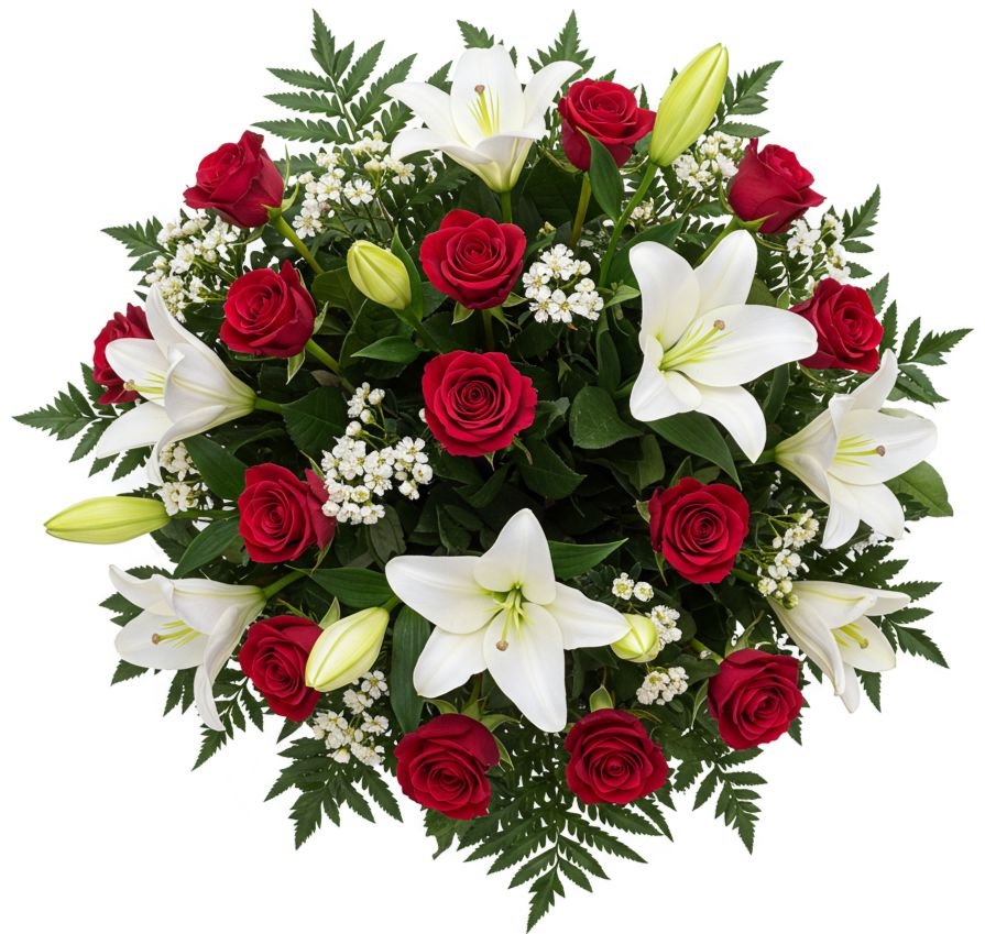Timeless, elegant, and truly romantic — this classic bouquet combines the purity of white lilies with the beauty of roses in a color of your choice. Accented with delicate white wax flowers and lush greenery, this arrangement is perfect for expressing love, appreciation, or heartfelt celebration. This stunning arrangement blends the serene beauty of white lilies with the timeless charm of roses — ideal for weddings, sympathy, or sophisticated gifting. Available for next-day nationwide delivery, including weekends, from Flowers Box London.
