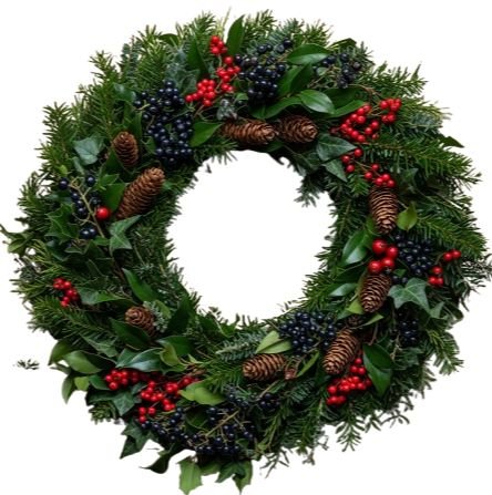 Holly: are incorporated, introducing a touch of evergreen charm. The glossy green leaves and bright red berries are emblematic of the holiday season, making this wreath versatile for both autumn and winter.