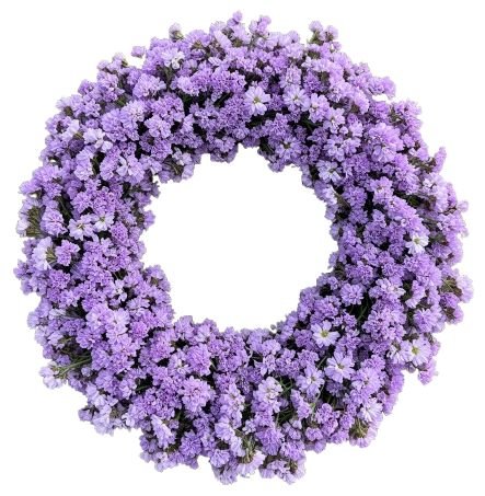 - Limonium (colour to choose from): known for its delicate clusters of blooms and long-lasting beauty, limonium adds a soft, airy texture to the wreath. Choose from a variety of shades — from calming lavender and soft pink to pure white or vibrant purple — to perfectly complement your décor or personal style. Limonium not only brings subtle color but also symbolizes remembrance, success, and lasting affection, making this wreath as meaningful as it is beautiful.