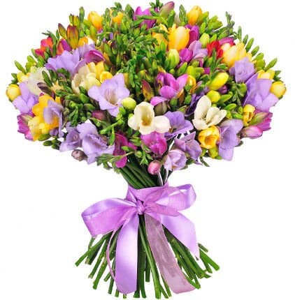 Classic Multicolored Freesias Bouquet – Vibrant Elegance