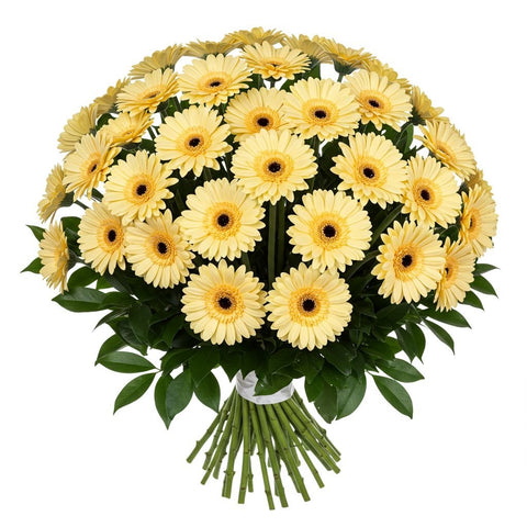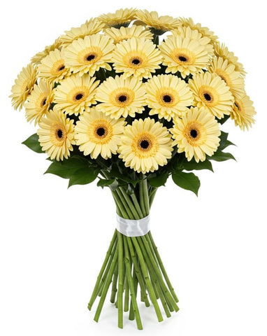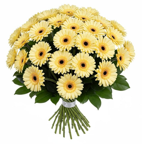 Brighten any day with the cheerful charm of our Classic Pastel Yellow Gerberas Bouquet. This elegant arrangement features soft, light yellow gerberas paired with lush greenery for a fresh and timeless look. Perfect for birthdays, thank yous, sympathy or simply to brighten someone’s day, this bouquet offers a soft, sunny touch that never goes out of style.