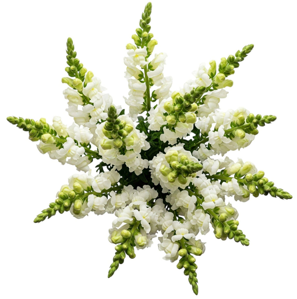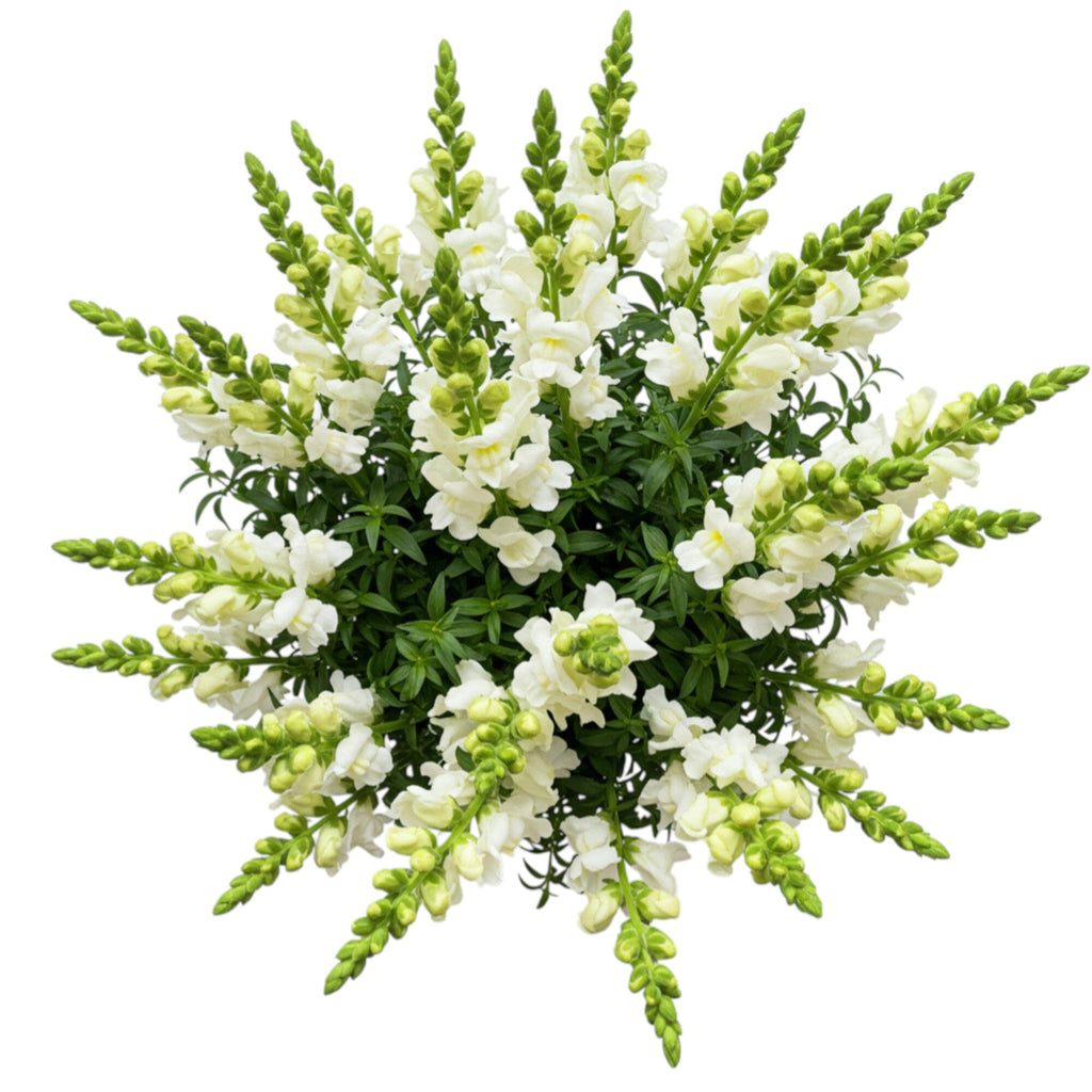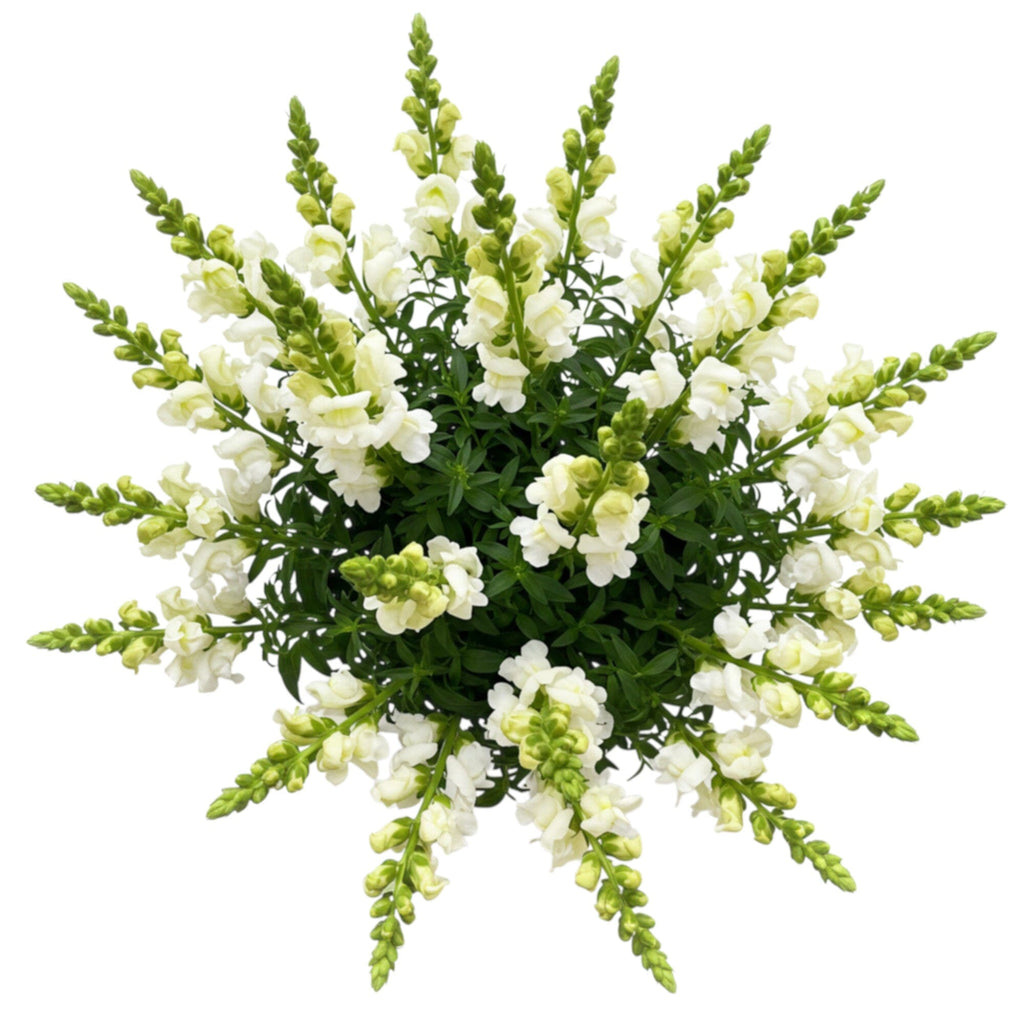 - White Snapdragons: tall and striking, white snapdragons bring structure and elegance to any arrangement. Their delicate blooms and fresh white color symbolize grace, purity, and sincerity, making them a meaningful choice for weddings, sympathy gestures, or minimalist home décor.
