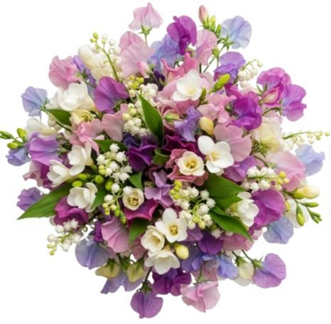 Romantic Sweet Pea and Freesias – Fresh Blooms with Lily of the Valley Charm