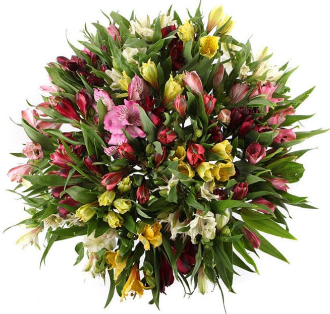 A striking mix of colors that makes an immediate impact. Each stem is carefully placed to ensure harmony in color and shape. Alstroemeria are known for their durability, offering days of floral beauty. Perfect for birthdays, housewarmings, congratulations, or "just because" moments.