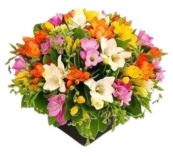 Brighten any occasion with the Colourful Freesias Box, a stunning arrangement of vibrant freesias in a palette of cheerful colors. Known for their sweet fragrance and delicate beauty, these freesias come together to create a fresh and lively display that exudes charm and elegance.