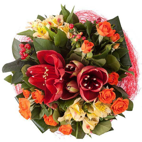 - Red Hypericum: the vibrant red hypericum berries provide a unique texture and pop of color, enhancing the overall charm of the bouquet.