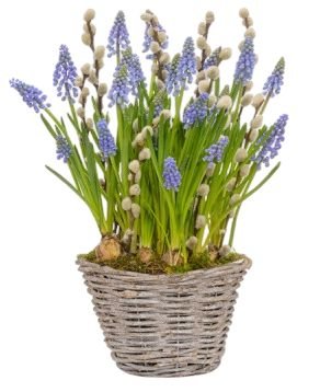 Cute Basket of Muscari with Catkins – A Charming Spring Gift