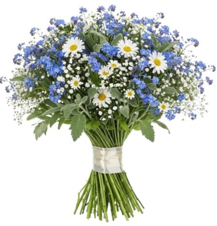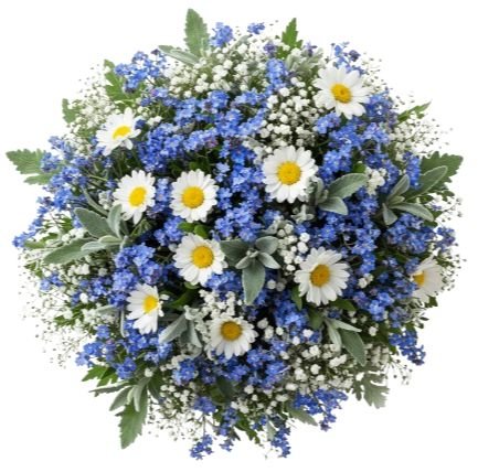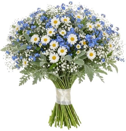 Bright, cheerful, and full of charm, our Cute Bouquet of Daisies with Blue Forget-Me-Nots is a heartwarming floral gift designed to spread joy. Featuring fresh white daisies (Leucanthemum) as the centerpiece, this bouquet is beautifully accented with the delicate blue hues of Forget-Me-Nots, airy touches of white gypsophila blooms, and soft stachys leaves for texture and greenery. The result is a playful yet elegant bouquet, perfect for birthdays, thank-you gifts, celebrations, or simply to brighten someone’s day. Its fresh, garden-inspired look brings a natural and uplifting vibe to any home or office space.