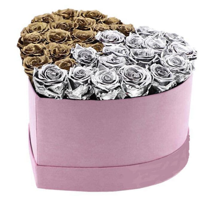 Cute Box of Silver and Gold Roses – A Luxurious and Unique Gift