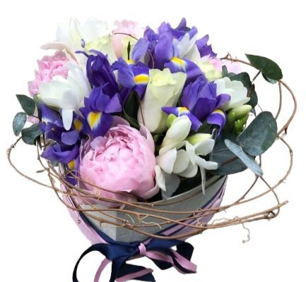 The Cute Box Pink Peonies in Blue is a breathtaking floral arrangement featuring a dreamy combination of pink peonies, blue iris, white roses, and white freesias, complemented by fresh eucalyptus for a touch of greenery. This elegant and romantic bouquet is perfect for any special occasion, whether it’s a birthday, anniversary, baby shower, or just a thoughtful gesture to brighten someone’s day.