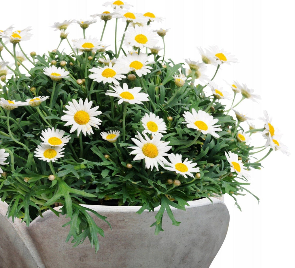 - White Marguerite Daisies (Argyranthemum): known for their pure white petals and cheerful, daisy-like appearance, these flowers symbolize purity, innocence, and beauty. Their timeless elegance adds a fresh and vibrant touch to any room.