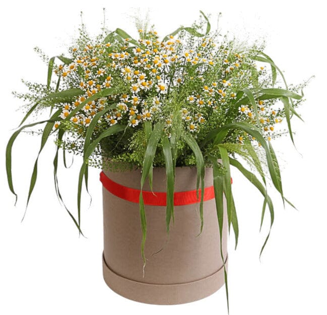 Bring a breath of fresh air and countryside charm into any space with our Daisy Tanacetum in Greenery Box, artfully arranged with panicum grass and green bell for added texture and depth. This unique and refreshing floral design combines rustic elegance with natural beauty — perfect for nature lovers, minimalists, and anyone who appreciates the beauty of greenery.