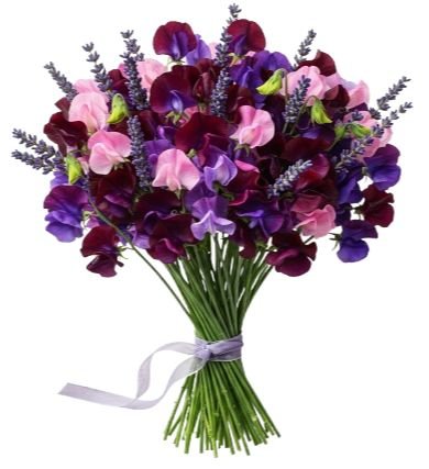 - Deep Purple Sweet Pea: with their velvety petals and intoxicating fragrance, deep purple sweet peas bring depth, elegance, and a sense of mystery to the bouquet. They symbolize lasting pleasure and appreciation, making them a meaningful choice for someone special.