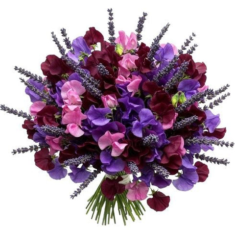 Deep Purple & Pink Sweet Pea Bouquet with Lavender – Fragrant Elegance