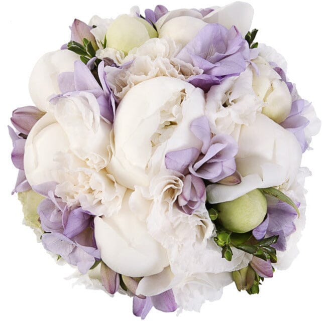 - Purple Freesias: fragrant and delicate, freesias add a touch of elegance and a pop of vibrant color that perfectly complements the peonies.