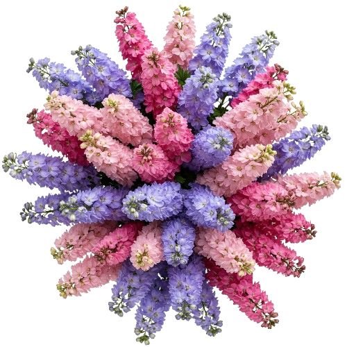 - Pink Delphinium: a romantic touch of pastel pink, symbolizing love, grace, and admiration, perfectly complementing the other tones.