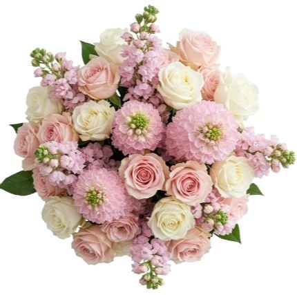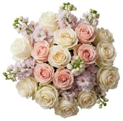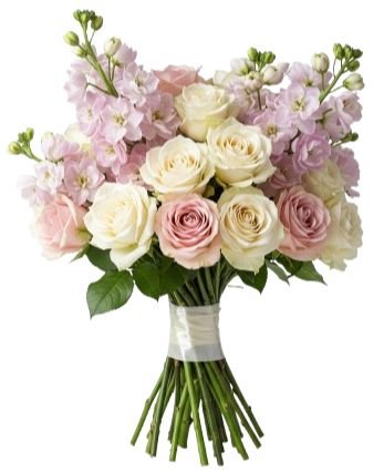 - White Roses: classic and timeless, white roses symbolize purity, elegance, and sincerity, creating a beautiful contrast with the soft pink tones.