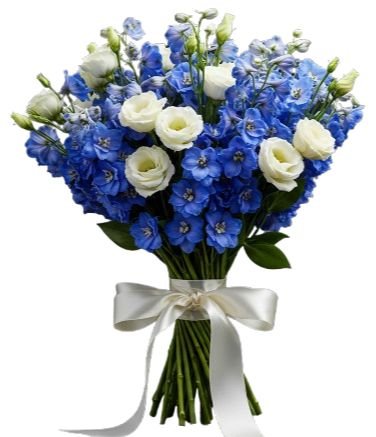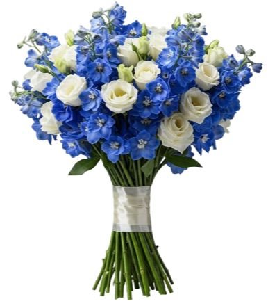This bouquet is a graceful combination of refined beauty and striking elegance, blending the pure sophistication of lisianthus with the tall, colorful presence of delphiniums. Perfect for marking special moments, offering congratulations, or expressing heartfelt emotions, it radiates both delicacy and strength. The Delphinium with White Lisianthus Bouquet blends soft romance with bold elegance. The delicate lisianthus offers refinement and grace, while the vibrant, towering delphiniums provide energy and presence. The result is a bouquet that feels both uplifting and serene — perfect for gifting or brightening any space.