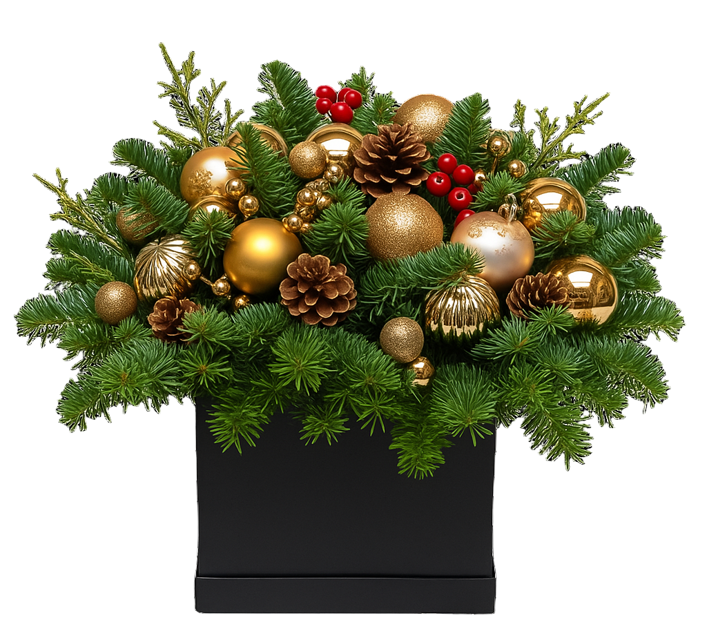 Celebrate the magic of the season with our Distinctive Gold Baubles Xmas Box, a luxurious holiday arrangement crafted to bring festive elegance into any space. Designed with rich gold tones, natural textures, and fresh winter greenery, this box is a perfect accent for Christmas décor or a thoughtful seasonal gift. Bring home the beauty of winter luxury and make your holiday season shine with this distinctive and elegant Christmas arrangement.