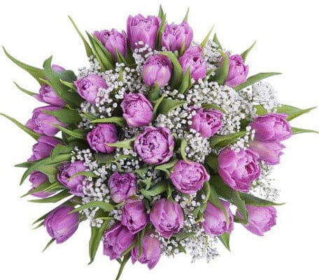 This exquisite Double Tulips with Gypsophila Bouquet is a perfect combination of elegance and grace, ideal for any occasion.