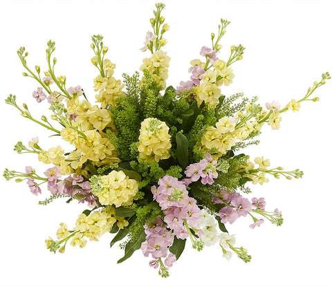 Experience a fresh and vibrant floral arrangement with our Duo Colour of Stock with Green Bell Bouquet. Featuring fragrant stock flowers in your choice of colors, this bouquet combines beautifully with the unique texture and subtle charm of green bell foliage. The stock flower is celebrated for its delightful scent and elegant, clustered blooms symbolizing lasting beauty and affection.