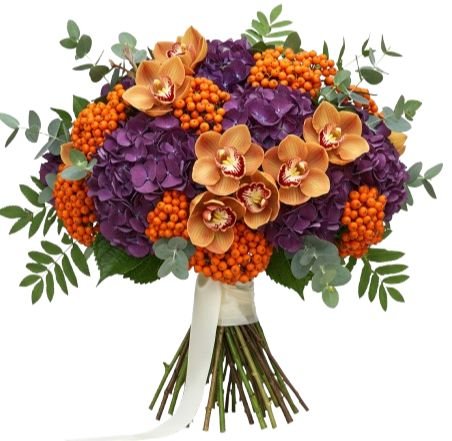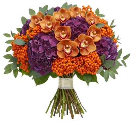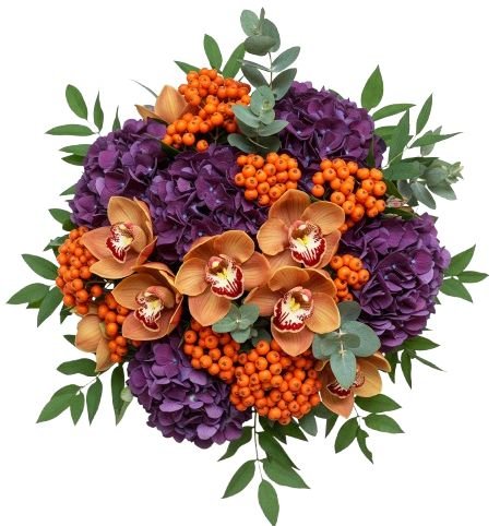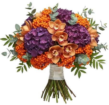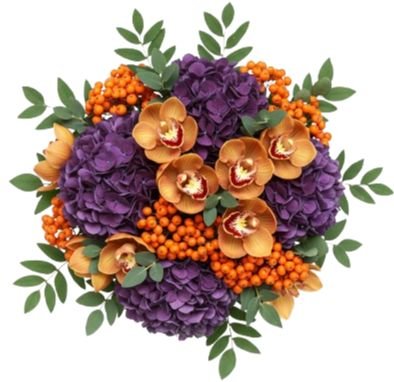 Indulge in refined beauty with our Dusky Elegance with Orchid Bouquet, a striking floral arrangement that blends rich colours and unique textures for a truly sophisticated gift. This luxurious bouquet is handcrafted with Cymbidium Orchids (available in your choice of colour), lush purple hydrangea, vibrant orange rowan berries, and fresh eucalyptus, creating an arrangement that is both elegant and unforgettable. The Dusky Elegance with Orchid Bouquet is an ideal choice for those who love dramatic yet sophisticated arrangements. Perfect for anniversaries, celebrations, or as a luxurious seasonal gift, this bouquet brings style, fragrance, and elegance to any setting.