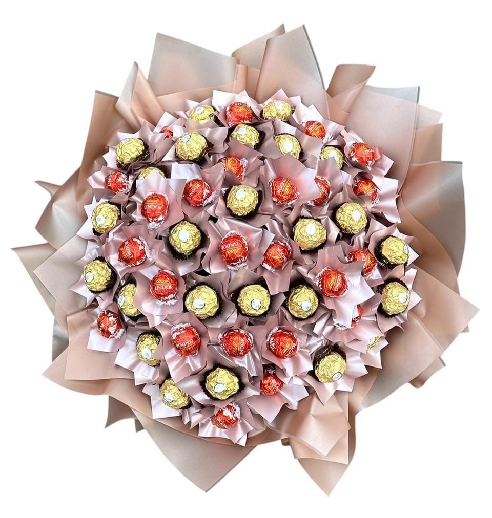 Chocolates( to choose from): exquisite collection features a wide variety of chocolates to please every taste preference. Whether you enjoy the timeless elegance of classic truffles, crave the vibrant burst of flavor in fruity bonbons, or savor the delightful crunch of nutty chocolates, our assortment is sure to impress. Each chocolate is a masterpiece, designed to satisfy the most discerning palates with an array of rich, decadent flavors.