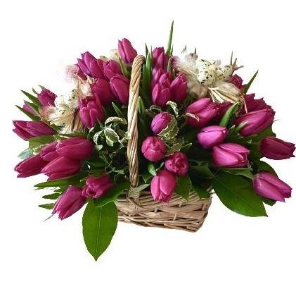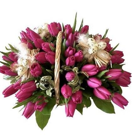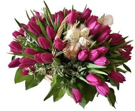 Festive Tulip Basket: Celebrate Easter with Colorful Tulip Blooms